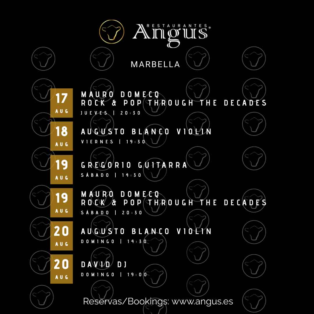 !Buenas tardes¡ Solo un recordatorio de que tenemos música en vivo y sesiones de DJ en ANGUS Marbella. Actuaciones dobles los sábados y domingos🎶¡ Donde hay humo, hay sabor😋🥩. Ven y únete a nosotros en ANGUS🥩, ideal para familias. Nos vemos allí! RESERVAS
